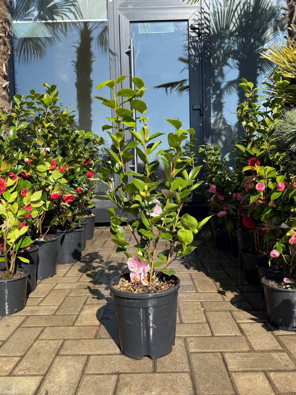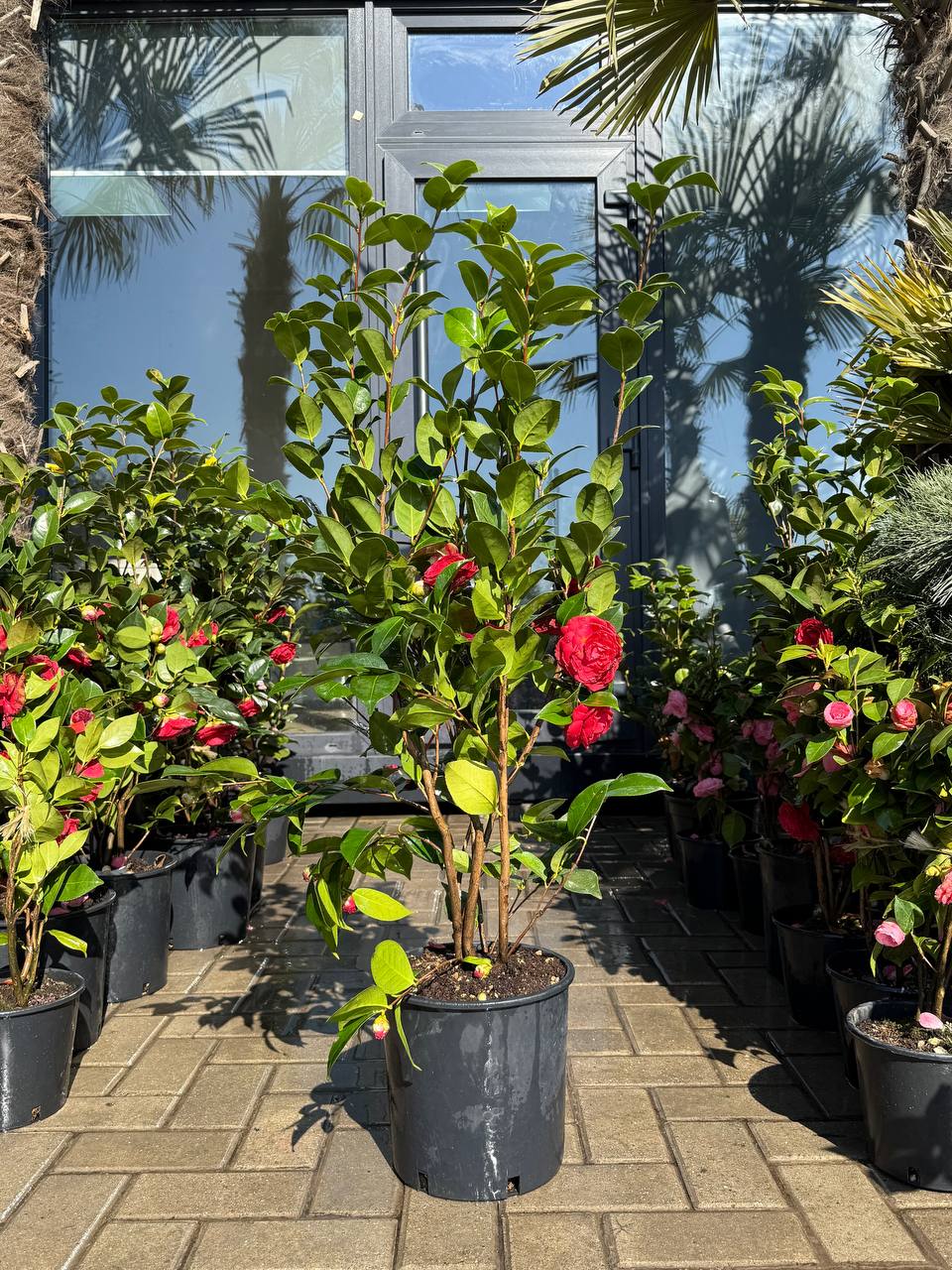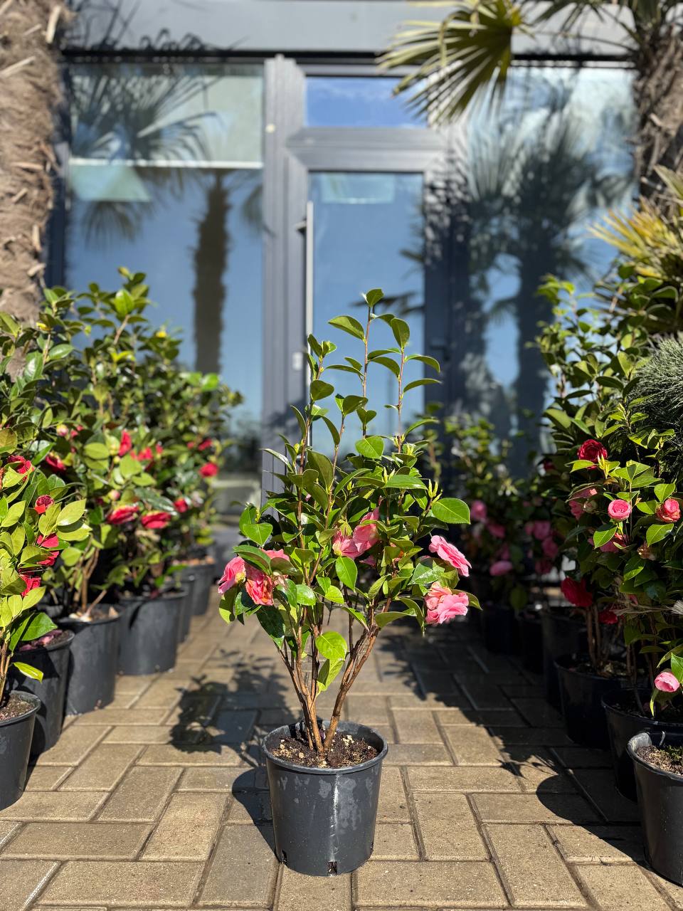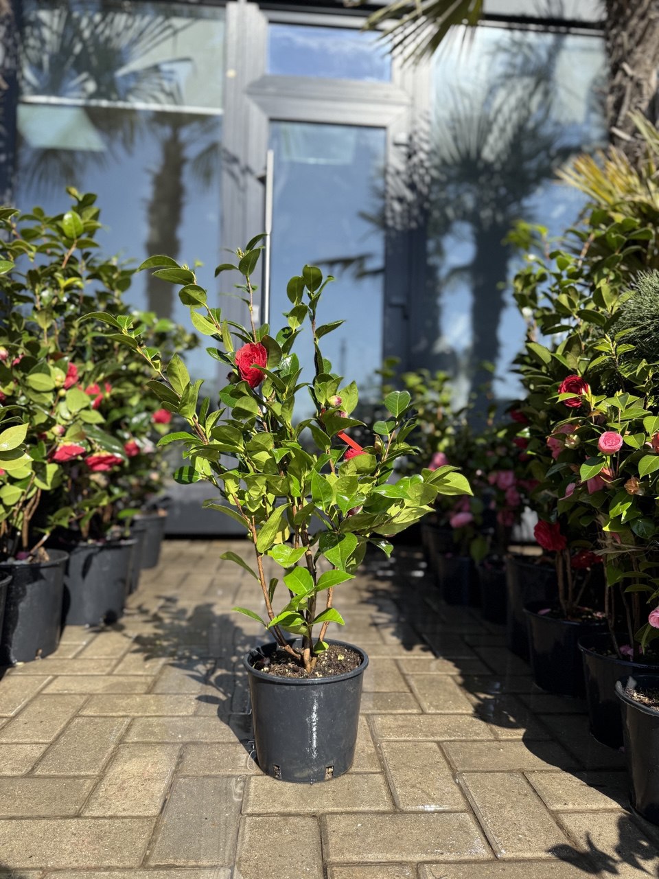 Camelia japonica este un arbust veșnic verde, cu frunze lucioase și o formă compactă, originar din Asia. Este o plantă decorativă apreciată pentru eleganța frunzișului și adaptabilitatea sa în grădini sau ghivece. Preferă solurile acide, bine drenate și bogate în materie organică, fiind ideală pentru zone semiumbrite, ferite de soarele direct și de vânturi puternice. Crește lent, dar uniform, formând o tufă densă și atractivă pe tot parcursul anului. Camelia japonica este potrivită atât pentru cultivarea în grădină, cât și pe terase sau balcoane, unde aduce un plus de rafinament și verdeață constantă. Necesită protecție în perioadele cu îngheț puternic, mai ales în primele ierni după plantare.