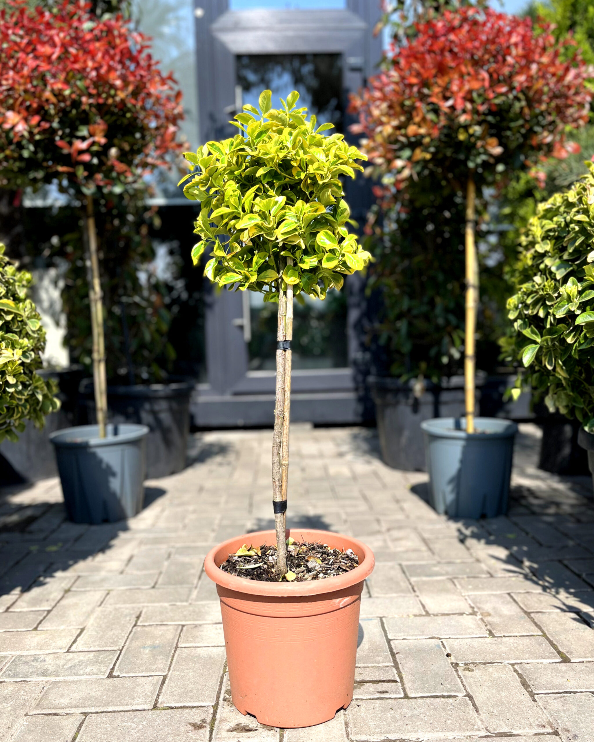 Euonymus ‘Elegantissimus Aureus’ copac este o plantă care atrage cu siguranta privirile. Frunzisul sau unic, cu un amestec de auriu si verde, creeaza un contrast puternic si vizualmente placut. Aceasta planta adauga cu siguranta o pata de culoare vibranta oricarei gradini.