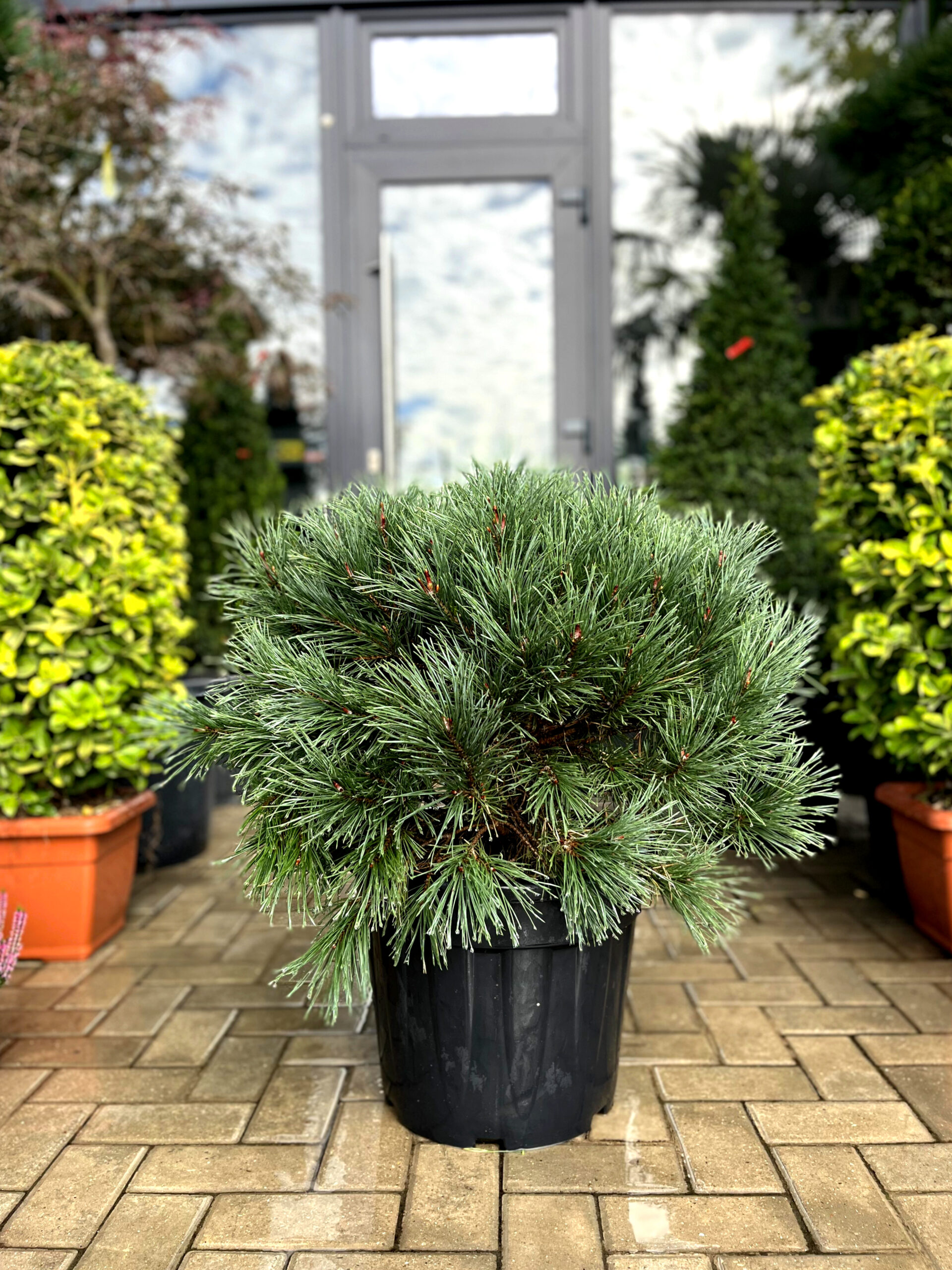 Îngrijirea este redusă, udările se fac moderat, evitând băltirea apei, iar tăierile sunt ocazionale, doar pentru menținerea formei. Pinul tolerează temperaturi scăzute până la –25 °C, nu necesită fertilizare frecventă, iar solul trebuie menținut liber de buruieni. În zonele cu ierni foarte geroase, este recomandat un strat de mulci pentru protecția rădăcinilor.