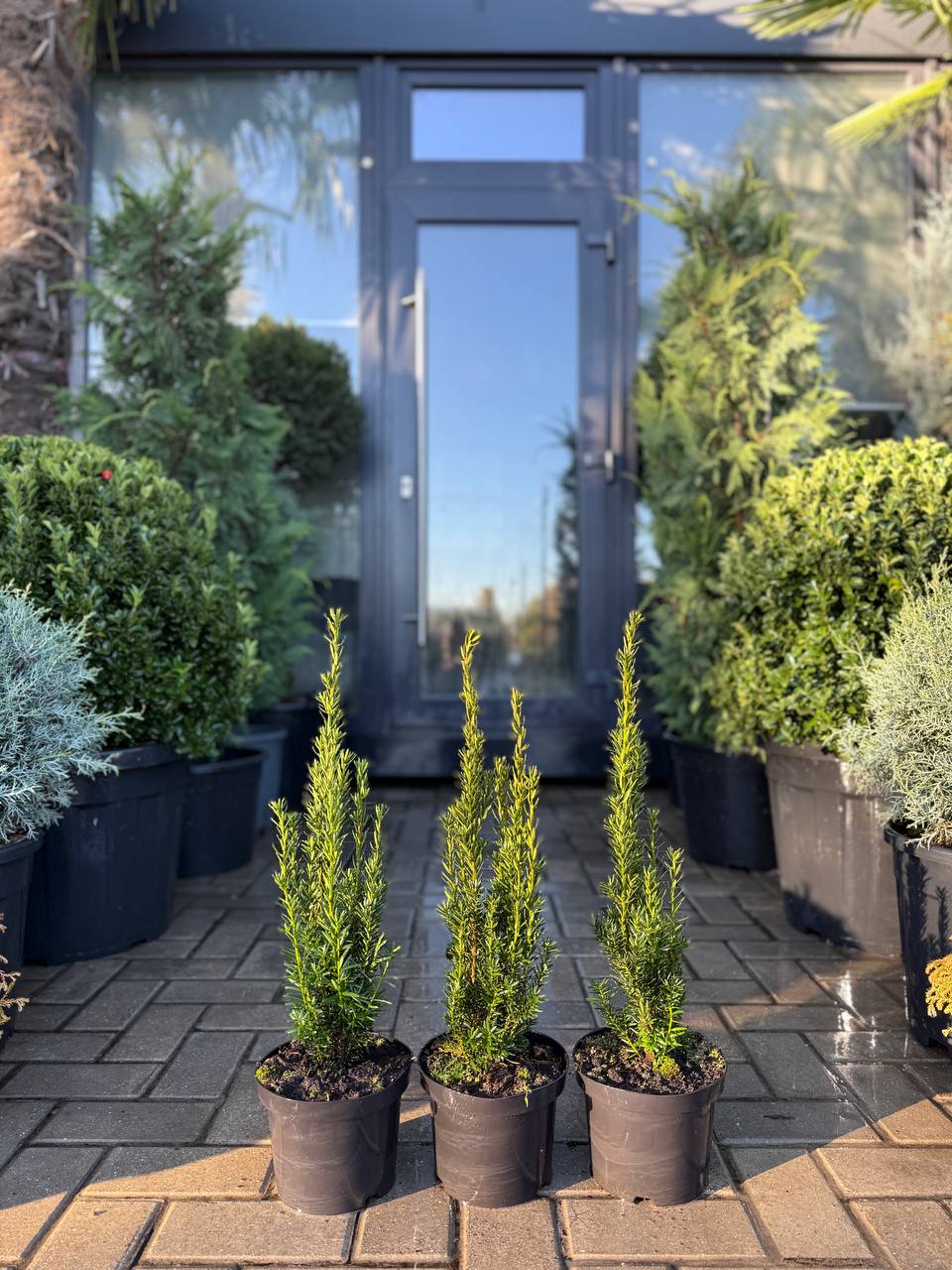 Tisa Hillii este o plantă mereu verde. Este un arbust de dimensiuni mici spre mijlocii, cu coroană foarte densă, columnară, cand este tanar, deschizandu-se usor in varf odata cu varsta, cu ace verzi lucioase, moi vara, cu nuante galben-aurii toamna si iarna. Taxus media Hillii este un conifer decorativ prin port, aspect, forma, culoare si frunzis. Este un soi foarte apreciat de catre gradinari si de catre designeri in peisagistica.